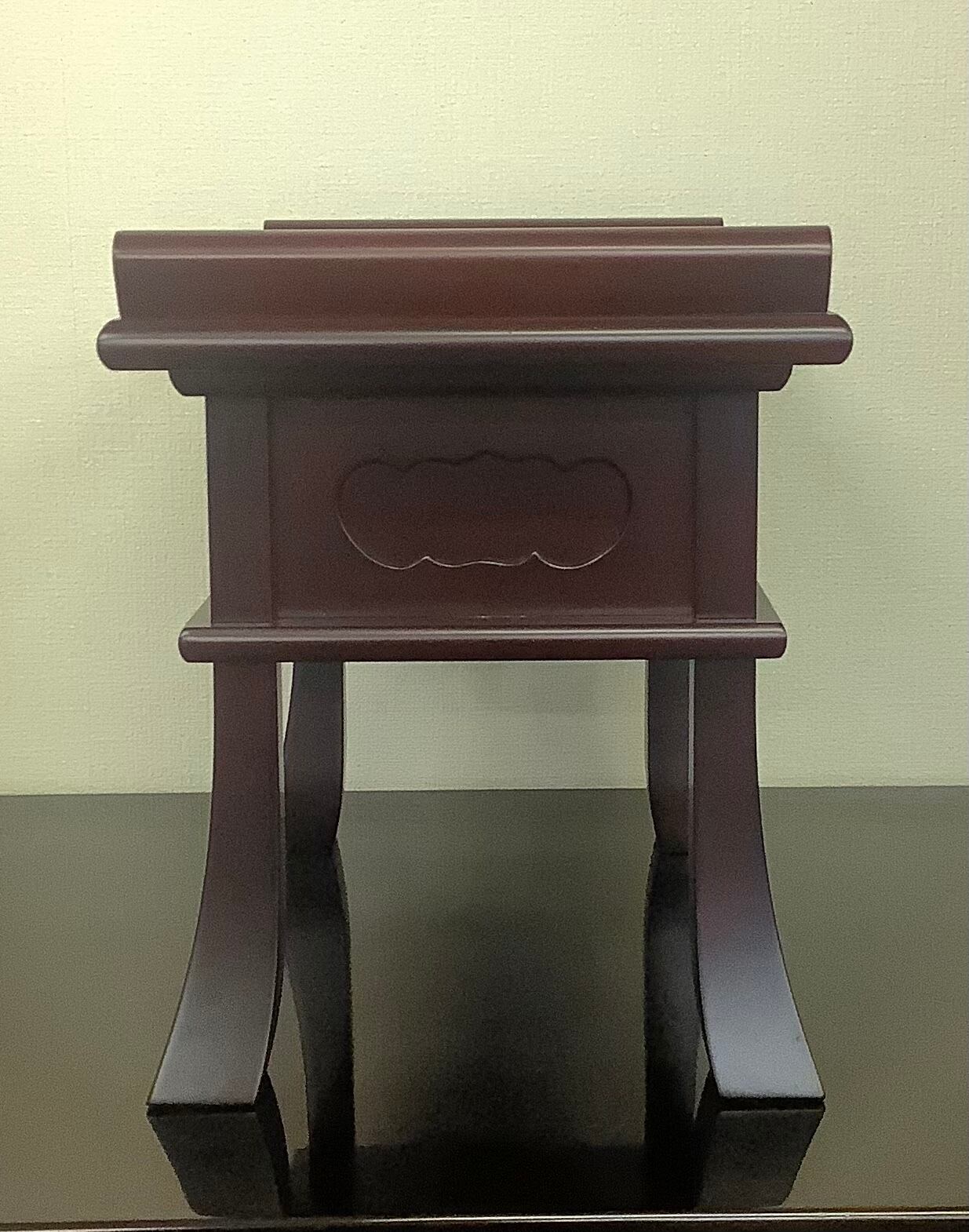 引き出し付きの伝統型経机です。紫檀調の木目を美しくだした塗装仕上げになっています。